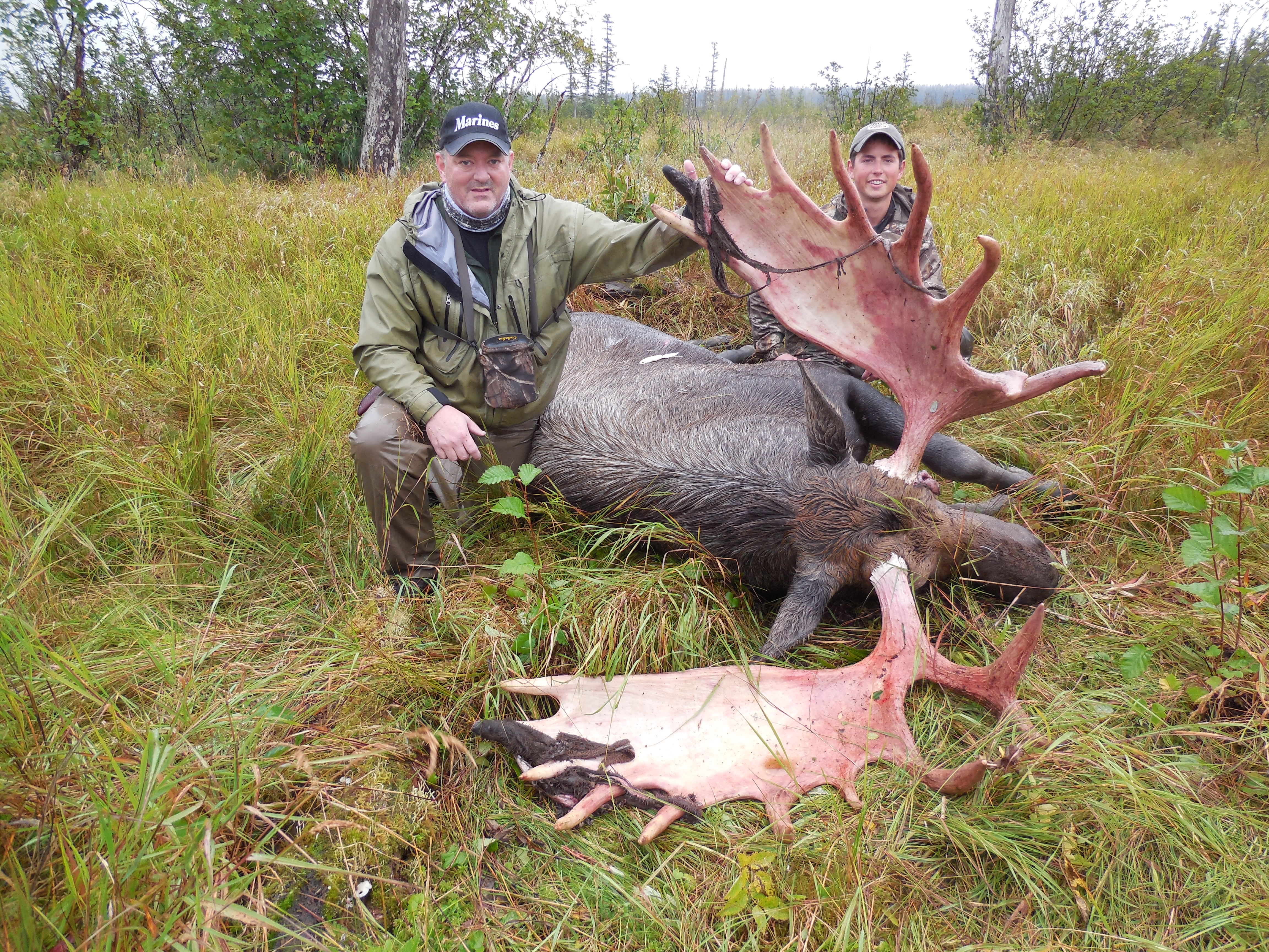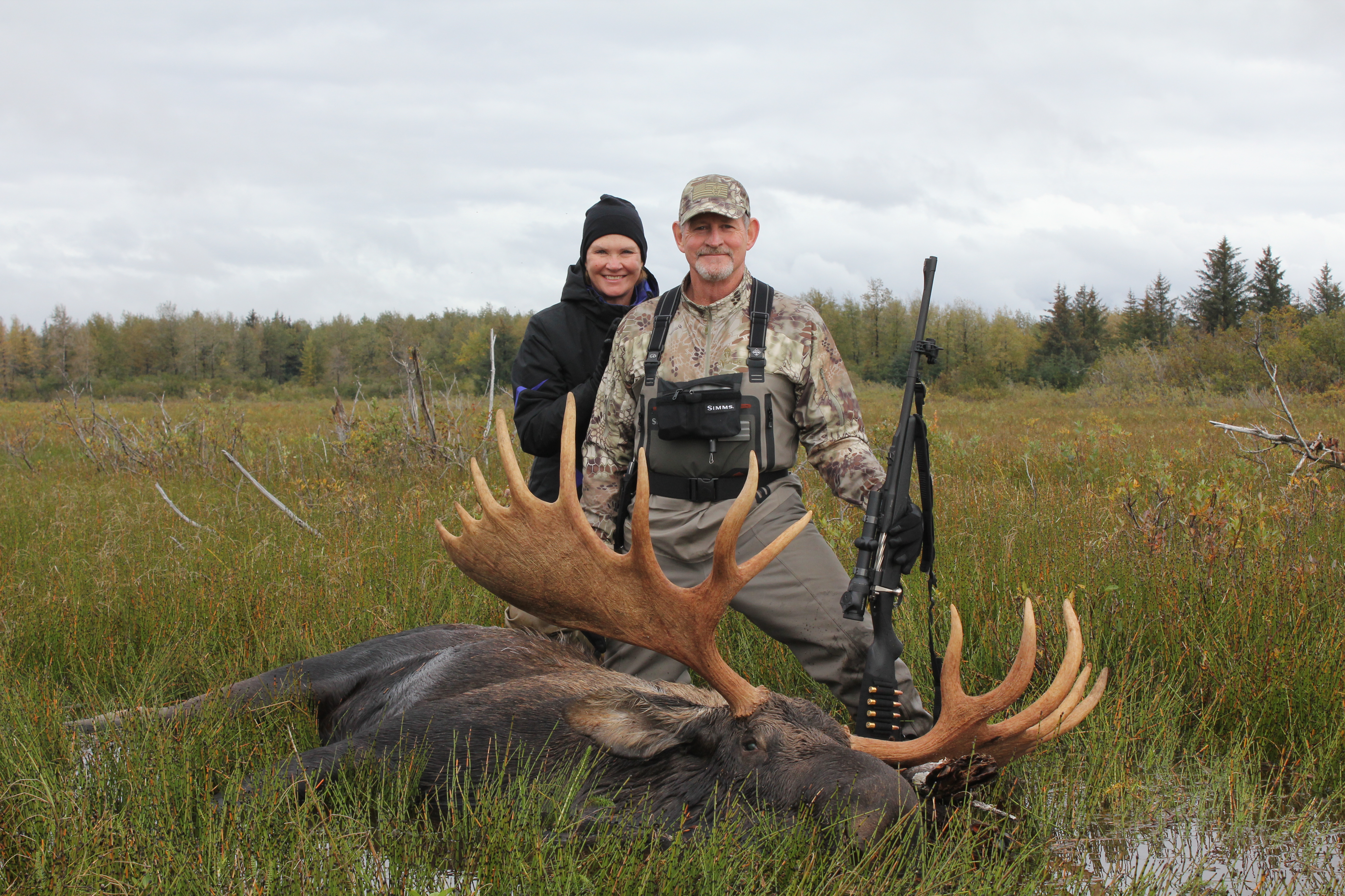 MOOSE HUNTS with Alaska Expedition are epic hunts. Our hunts cover a large area of remote Alaska where we have access to extremely wild country, Moose inhabit the rivers and wetland marshes in close vicinity to our main lodge where we utilize our specialty shallow water boats to gain access. Chest waders are typically part of our day to day operations as moose love areas that hold water. The Alaska Department of Fish & Game requires moose have a minimum spread of 50 inches or a minimum of 3 or more brow tines on at least 1 side to be considered legal. Here at Alaska Expedition, we strive to target bulls in the 60 inch or better class to insure we are taking mature bulls from our hunting area. Once a moose is harvested the real work begins. Our guides take great appreciation in processing of this natural resource and all edible meat is packed and delivered back to our main lodge. Once we have your moose back at the main lodge, we will process and package your meat for easy transport in our airline approved boxes.