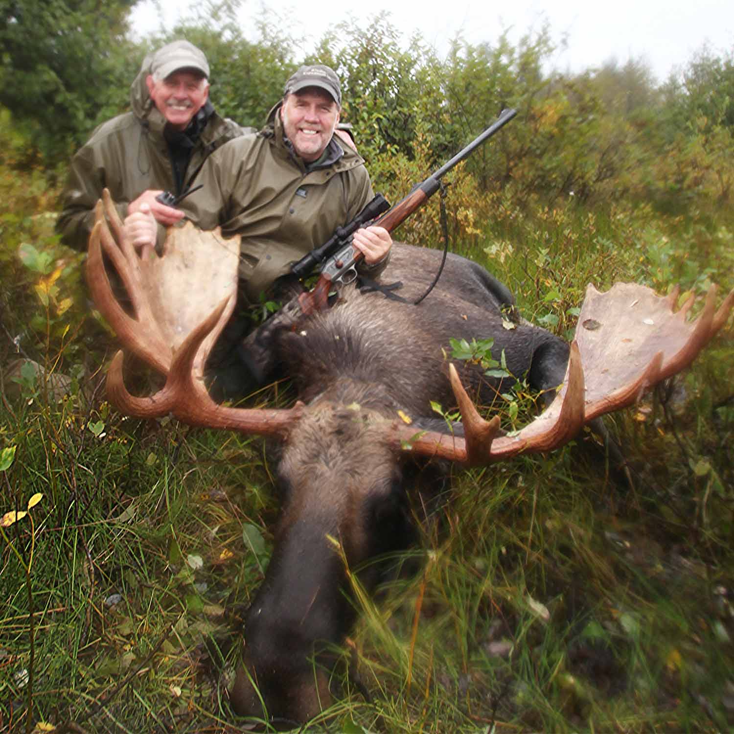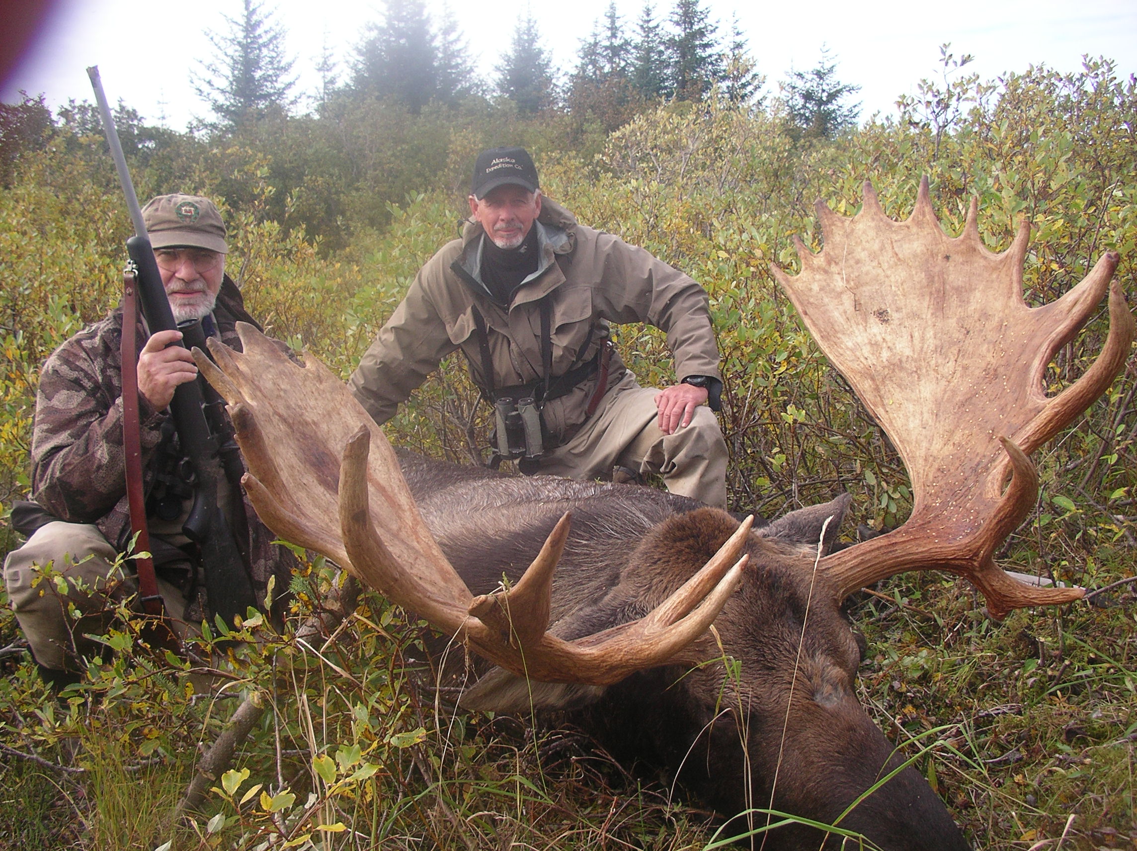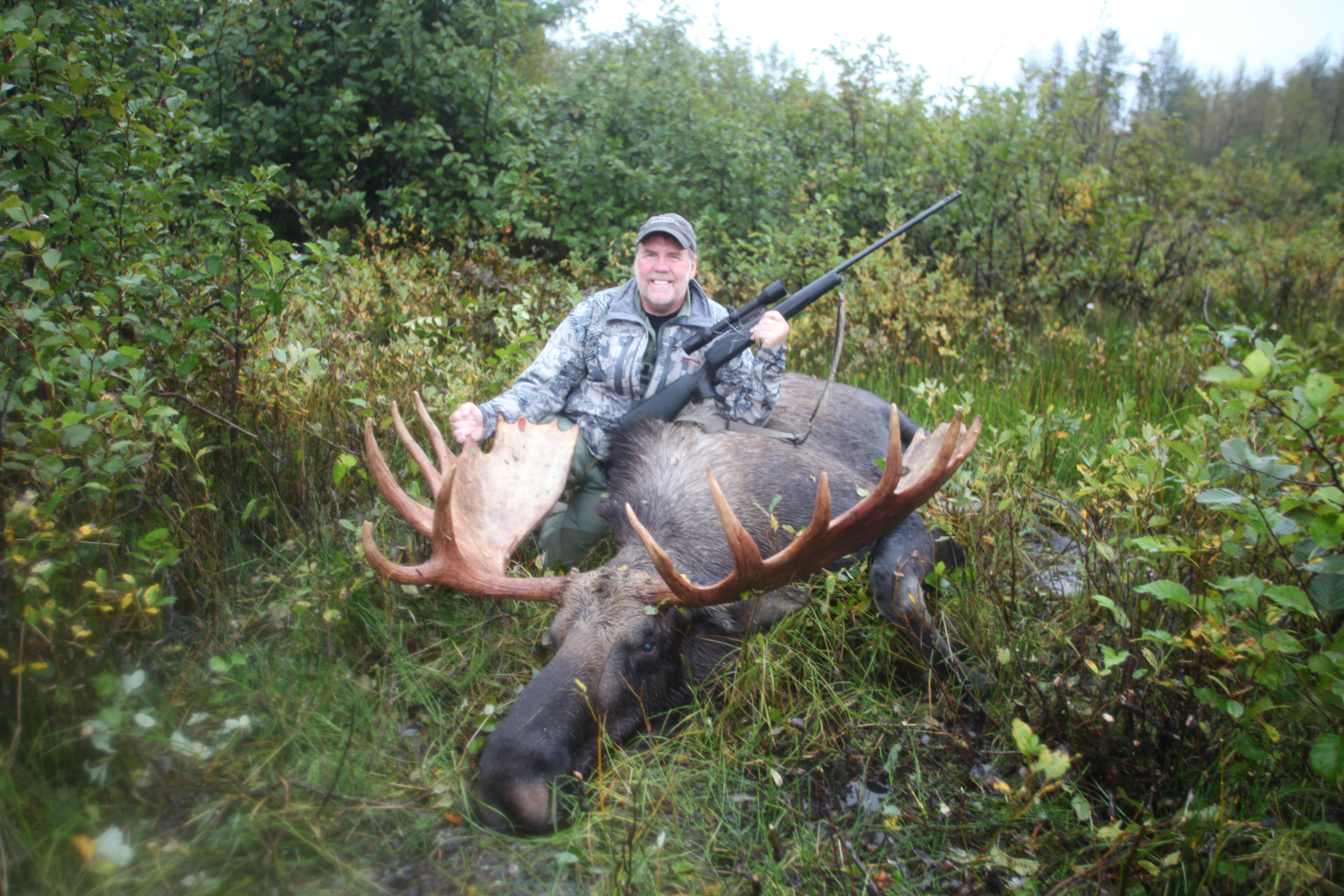 OUR COASTAL HABITAT and surrounding area consisting of deep mountain valleys, vast swamp lands, heavily wooded spruce forest and wild rivers allow these animals the opportunity to grow quite large. It is not uncommon to take bulls well into the 60+ inch range with some bulls coming in at over 70+ inches. Moose season begins September 1st here at Alaska Expedition where the beginning of our season is pre-rut. Our hunts are conducted in specific locations that are known to hold quality numbers of trophy bulls and cows where our professional guides use calling methods to pull these giants from the thick spruce or heavily covered swamps. Combine Moose with Brown Bear, Black Bear or Mountain Goat for a world class combination hunt.