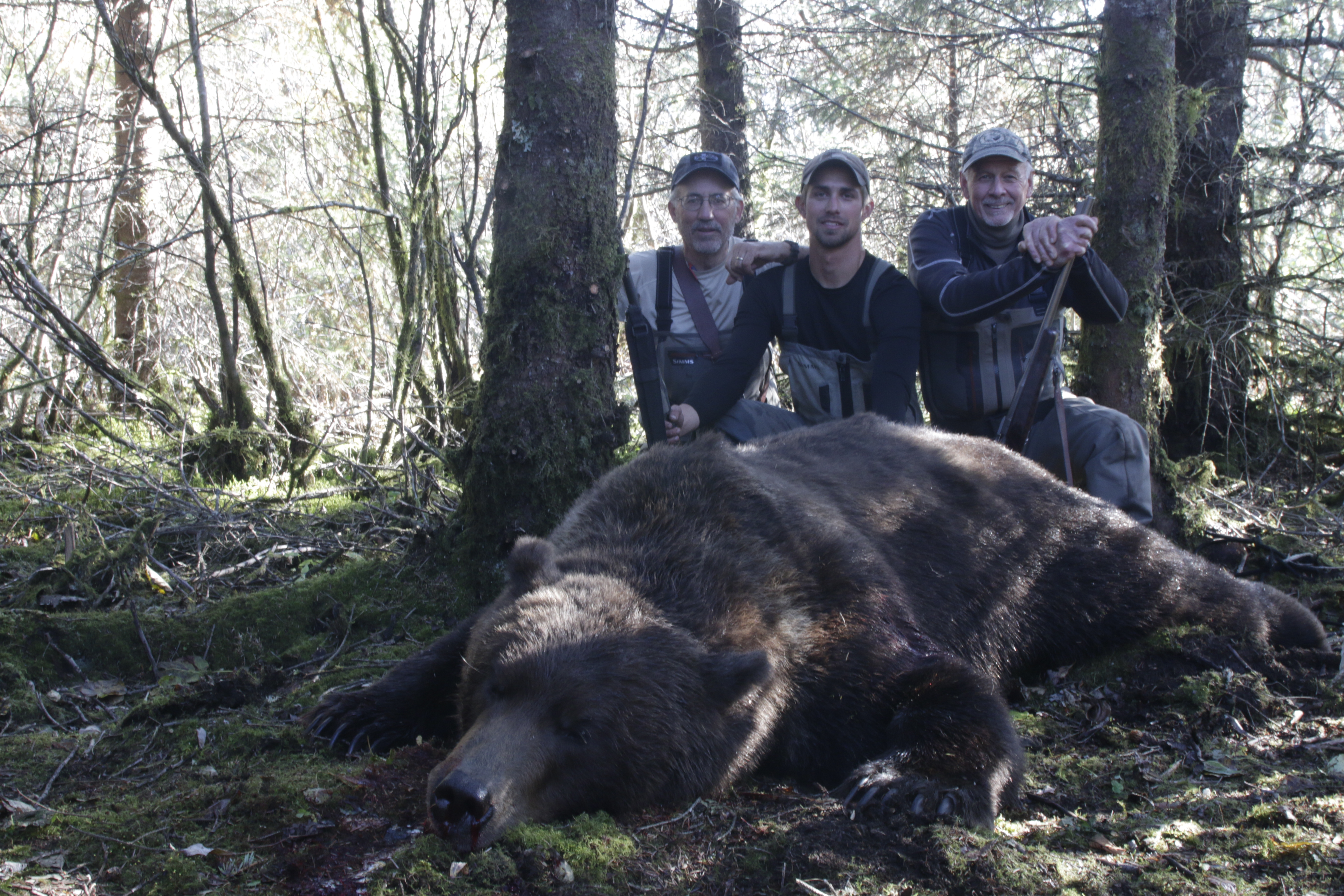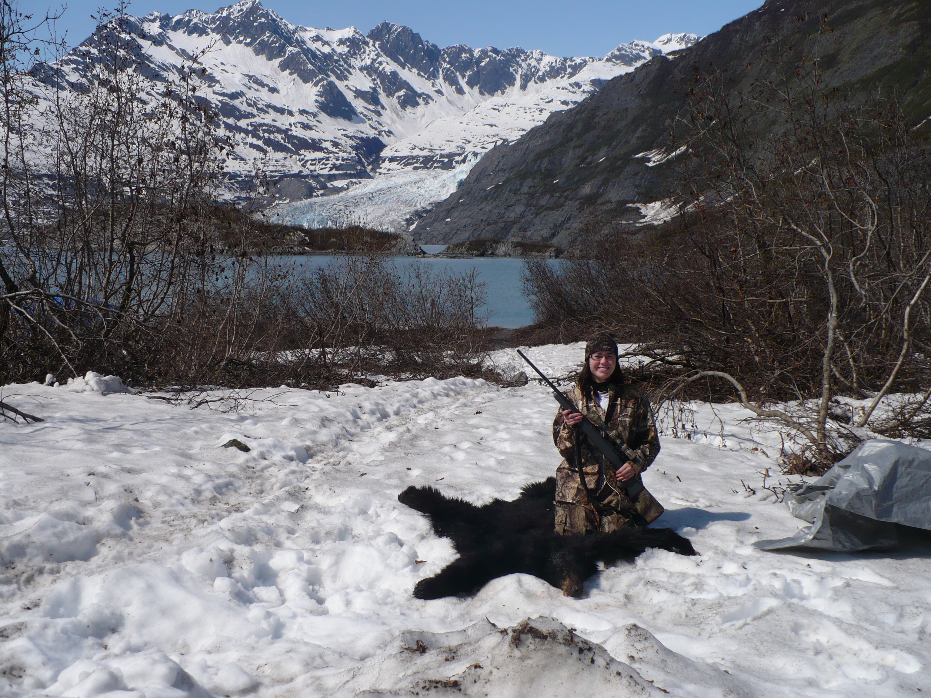 The North Gulf Coast & Prince William Sound is known for producing some of the largest black bear in the state of Alaska. Unit 06 provides black bears with premium habitat from Glacial moraines and coastal grass lands to berry covered slopes at higher elevations. Our spring hunts consist of targeting black bears at lower elevations where they forage on new spring growth and wild strawberries as where our fall hunts generally take place at high elevations that consist of fall berry crop. The black bears taken in our hunting area are known for their supreme thick black coats and excellent claws. Black bear hunts may also be added onto any of our other trophy big game hunts.
