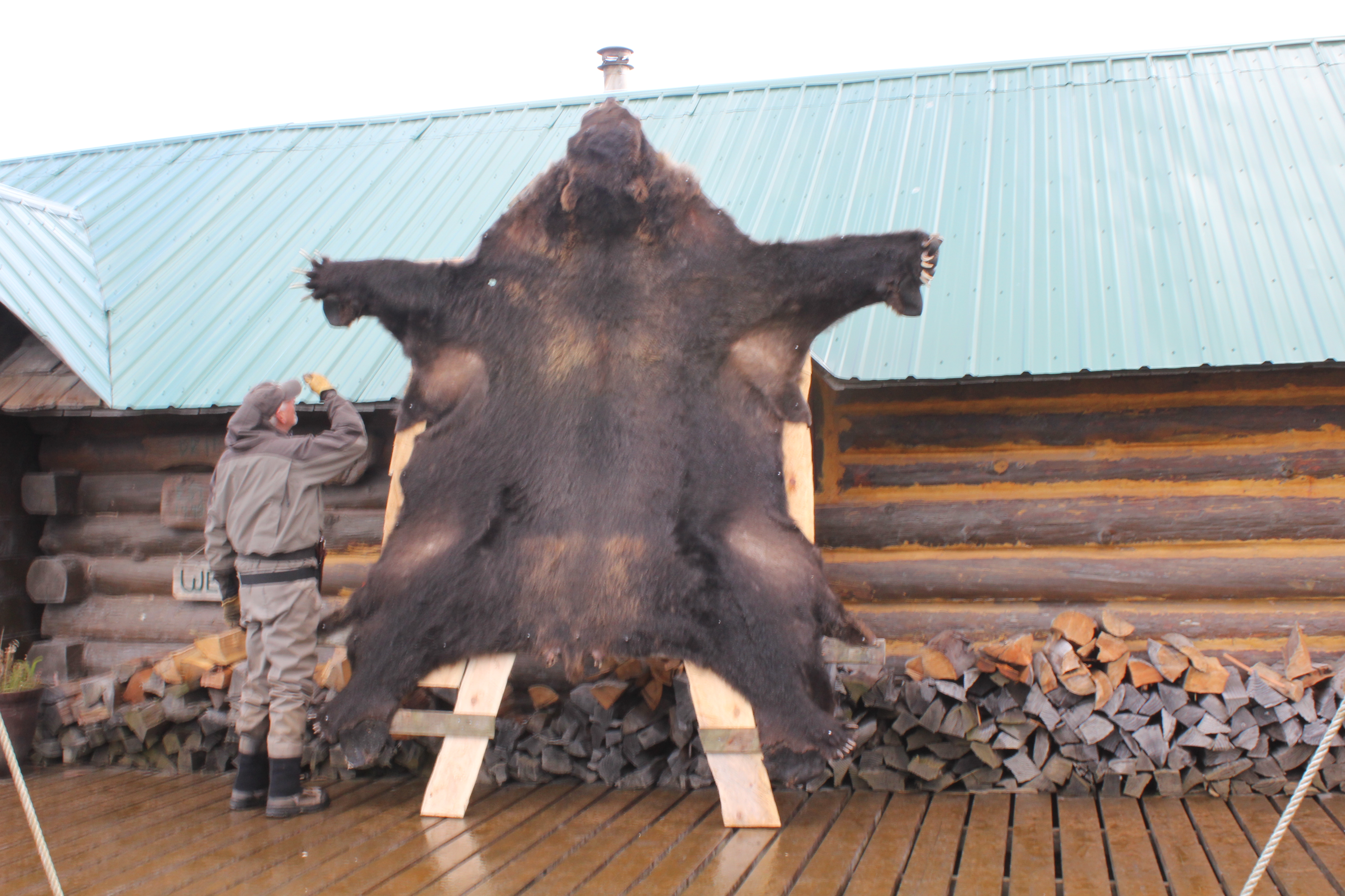 Our skinning and fleshing services are included in the cost of your hunt. All hides and skulls are tagged with our hunter’s name, address and contact information along with a separate tag with your taxidermist information before it leaves our lodge to the expediter. Expediting fees are not included in the cost of your Alaskan Hunt.