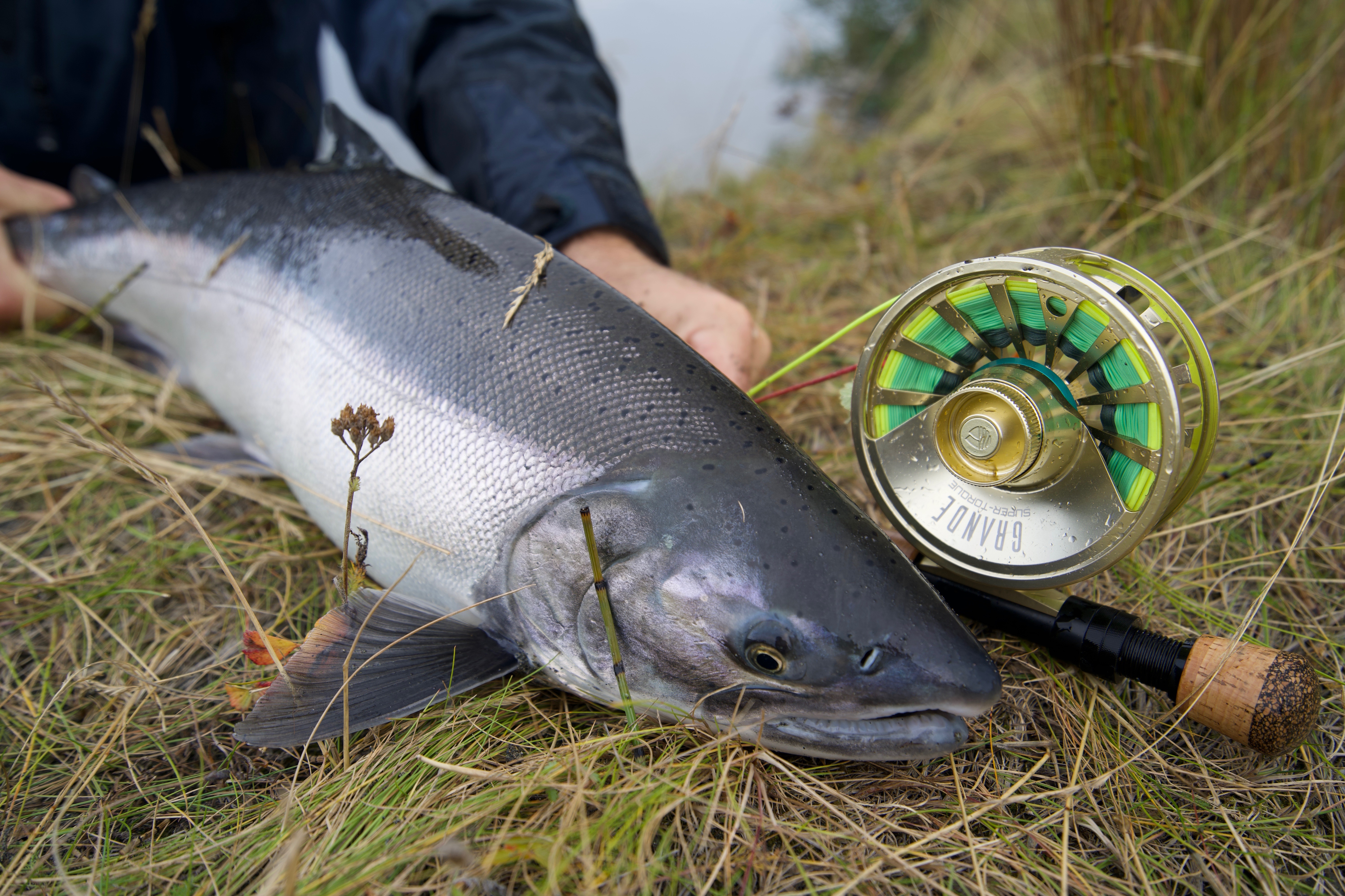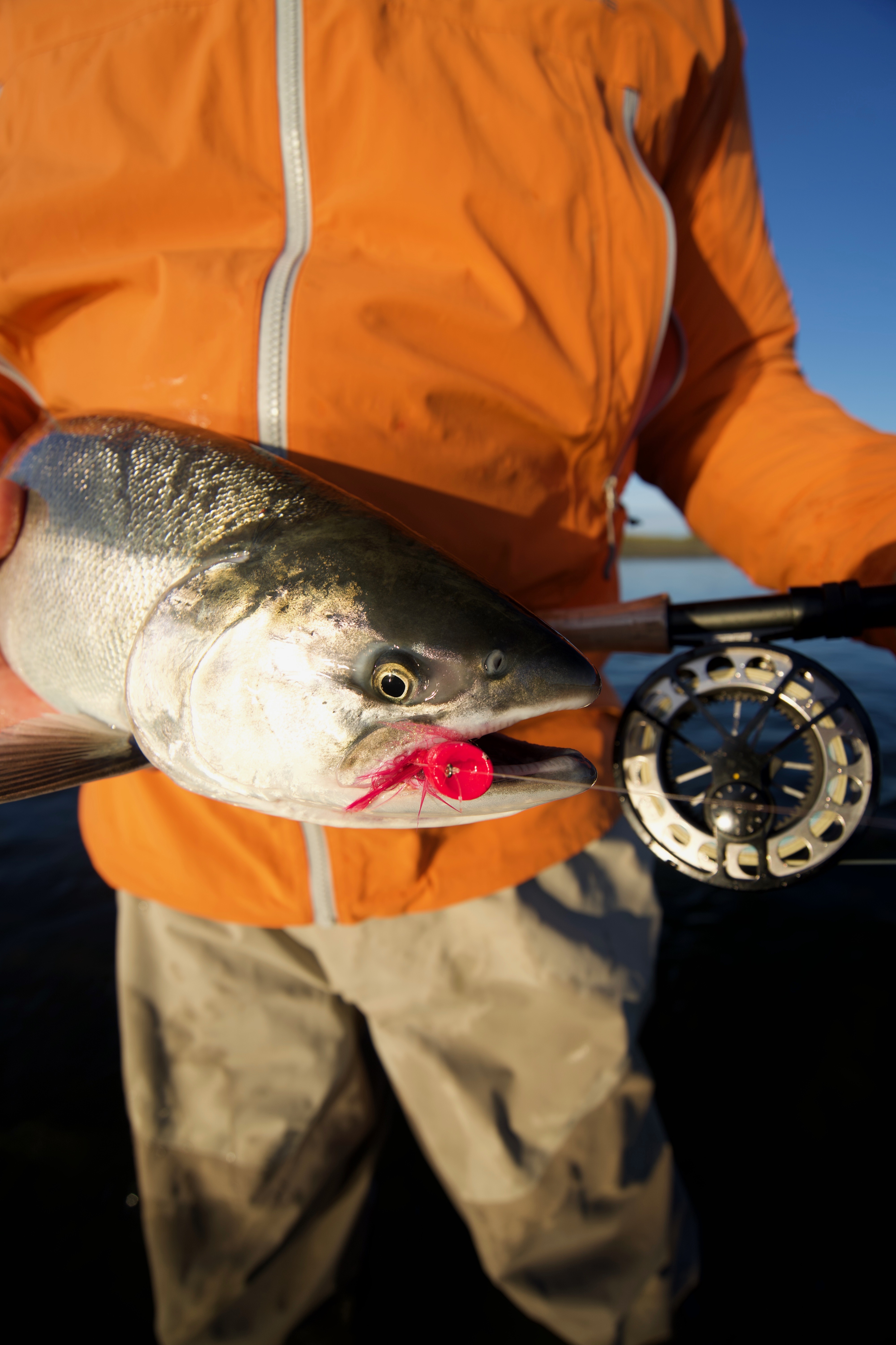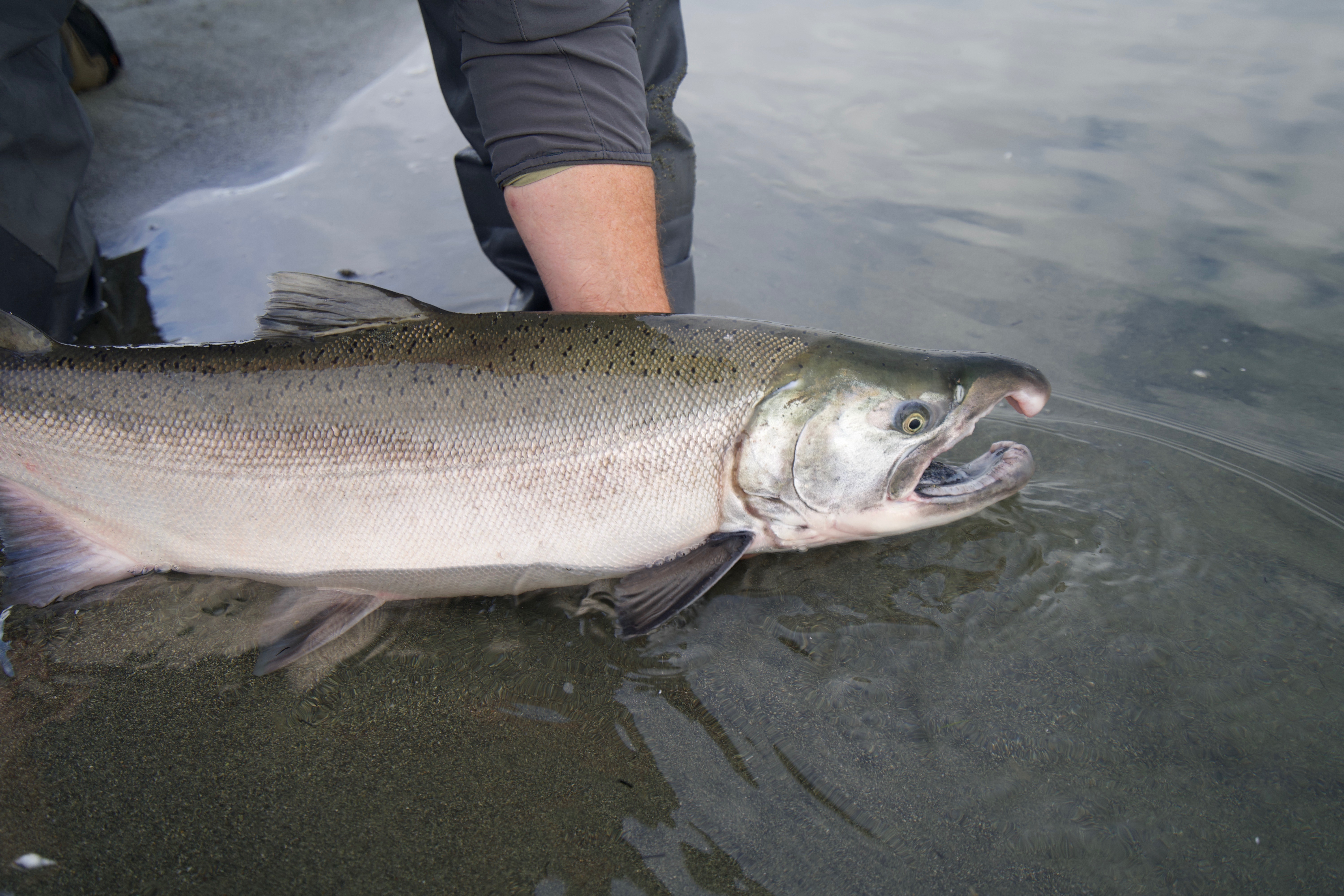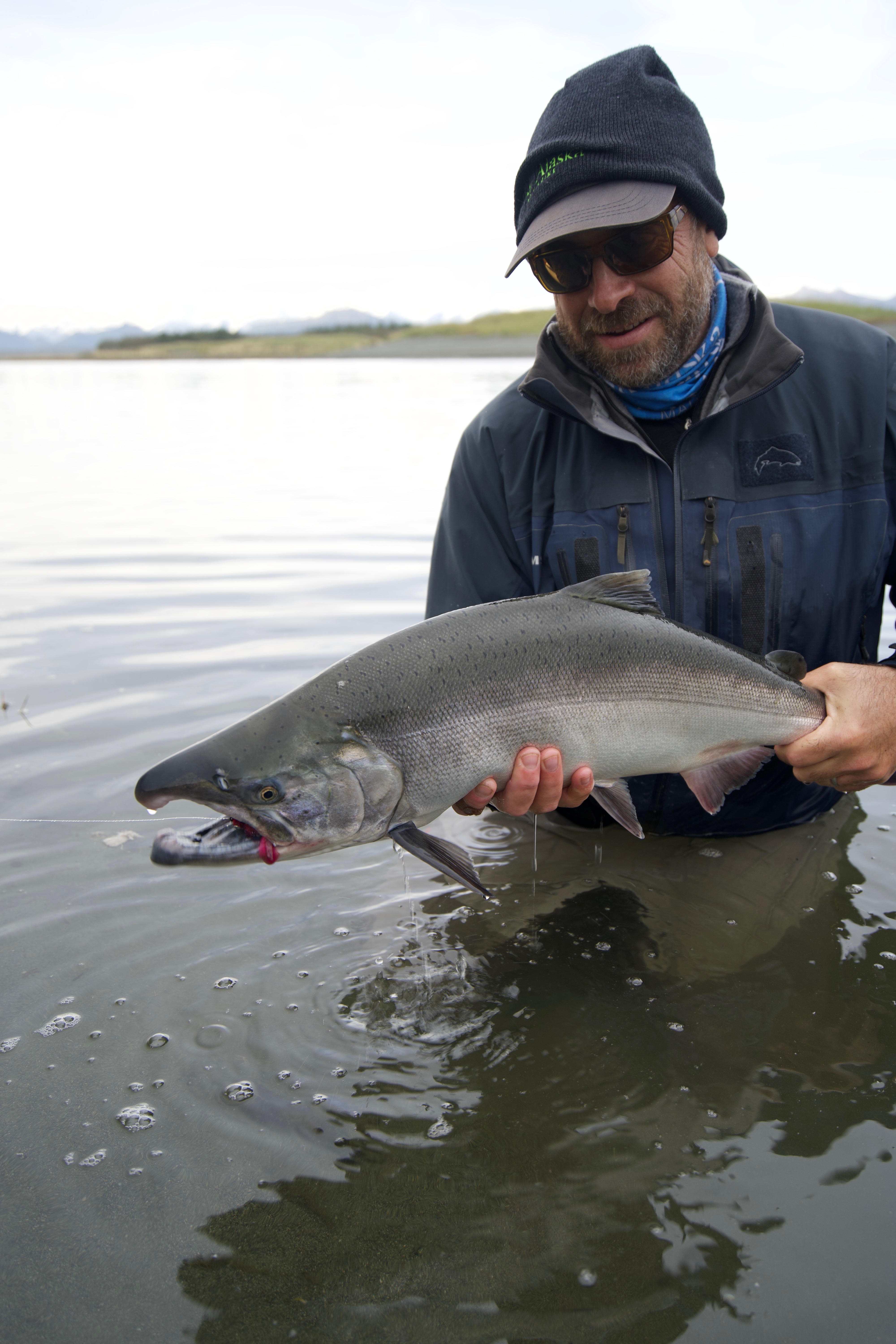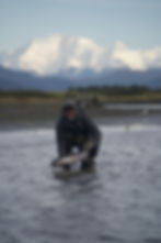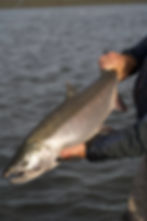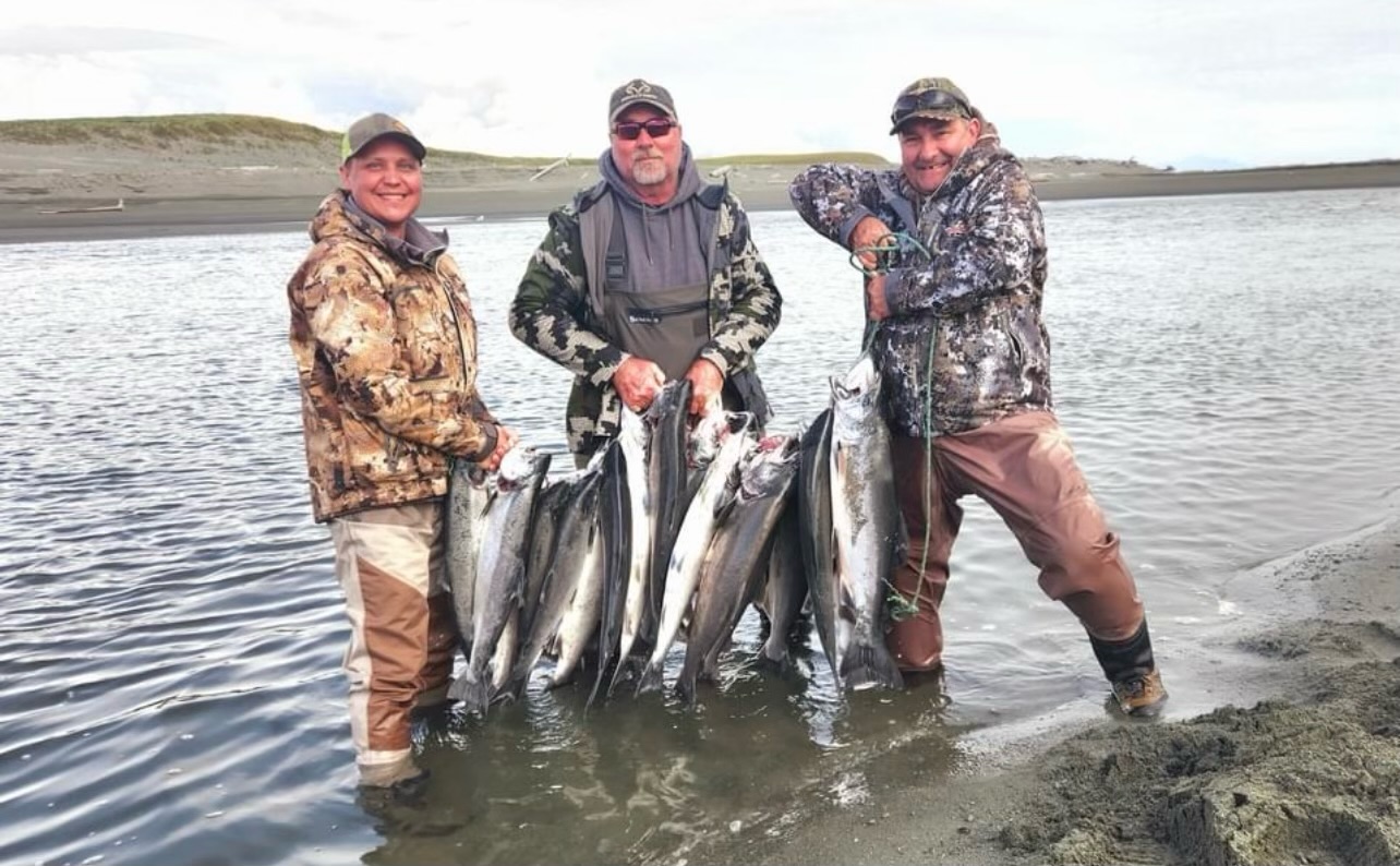 Sport Fishermen consider silver salmon the “premier” pacific salmon species, as it is a very aggressive and hard fighting fish. Silvers are characterized by their acrobatic, sizzling runs that will consistently go into the reel’s backing. An average silver weighs about 10½ pounds, but our lodge record is over 22 pounds. Don’t be surprised if you have to rest your arms from time to time! The silver run on the Tsiu is an extremely strong, long-lasting run that occurs from early August through October. The type of tackle fisherman use is fly, casting, or spinning equipment. Eight or nine weight fly-rods are preferred with high capacity reels (to accommodate those long rocket runs!) and medium weight casting and spinning gear. We will provide you with a complete suggested gear list including the type of flies and lures that will bring you the most success. Fishing is included on all of our hunting expeditions where you will have one of our professional fishing guides on hand to show you the best locations on the river.