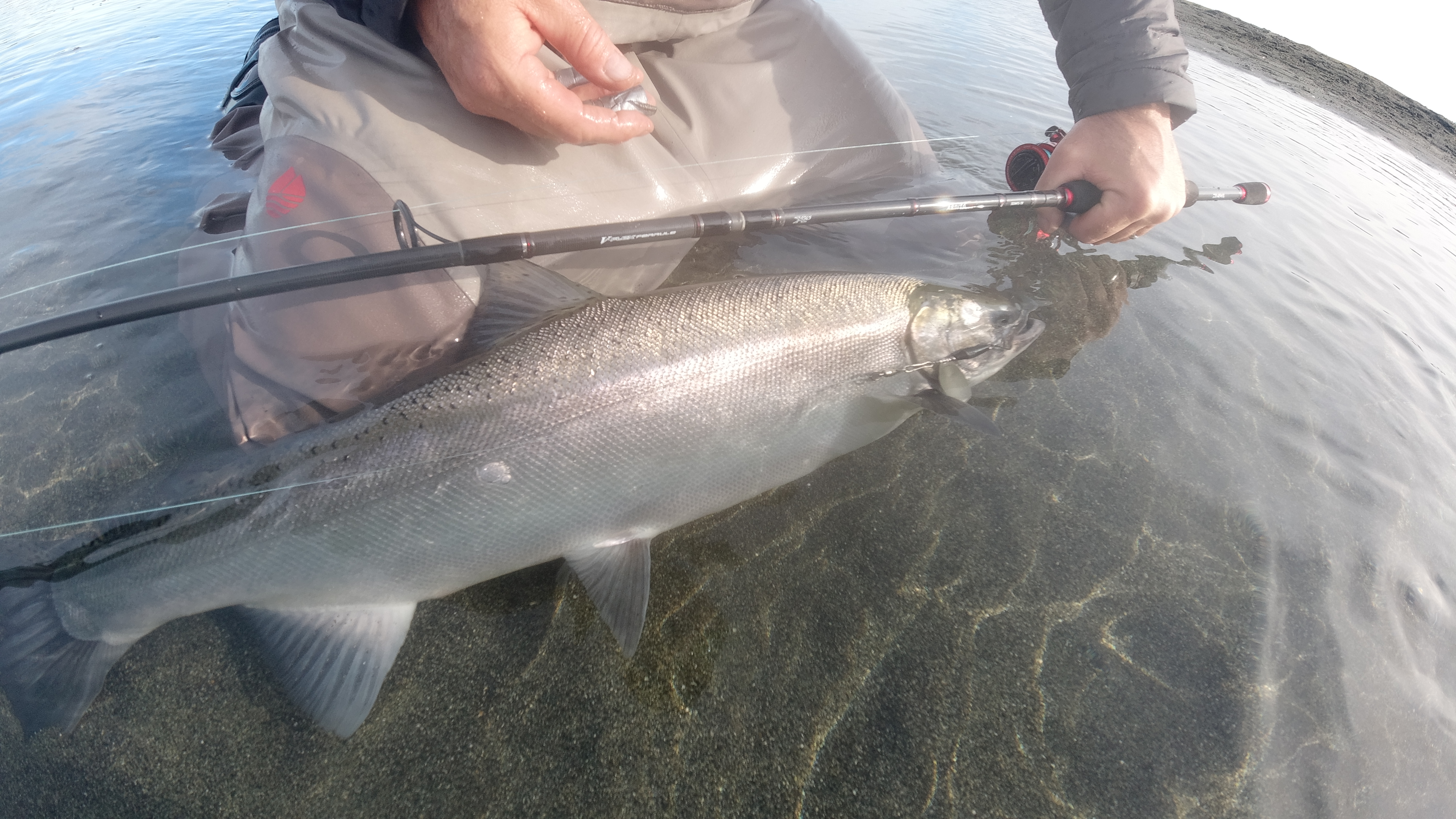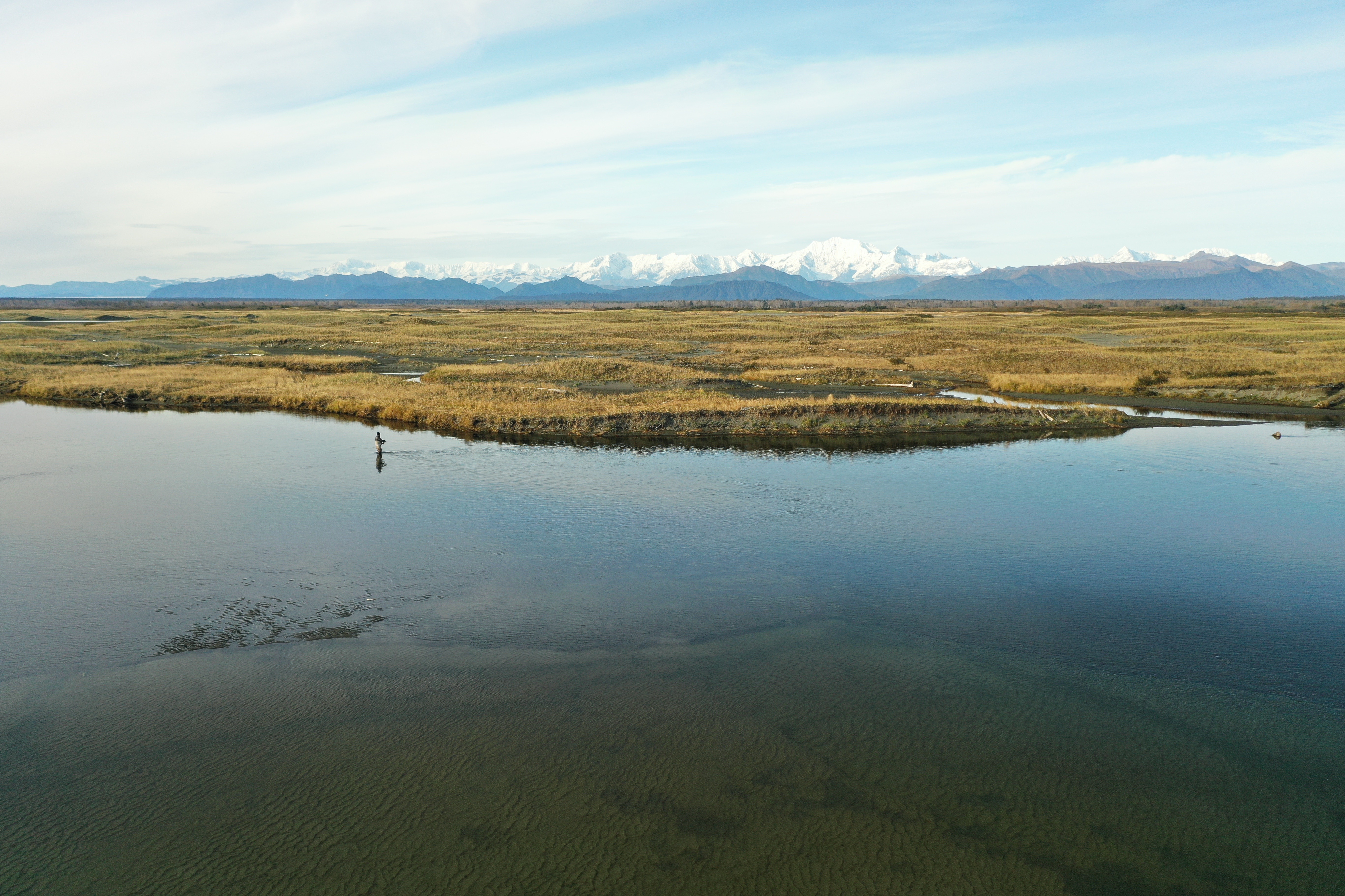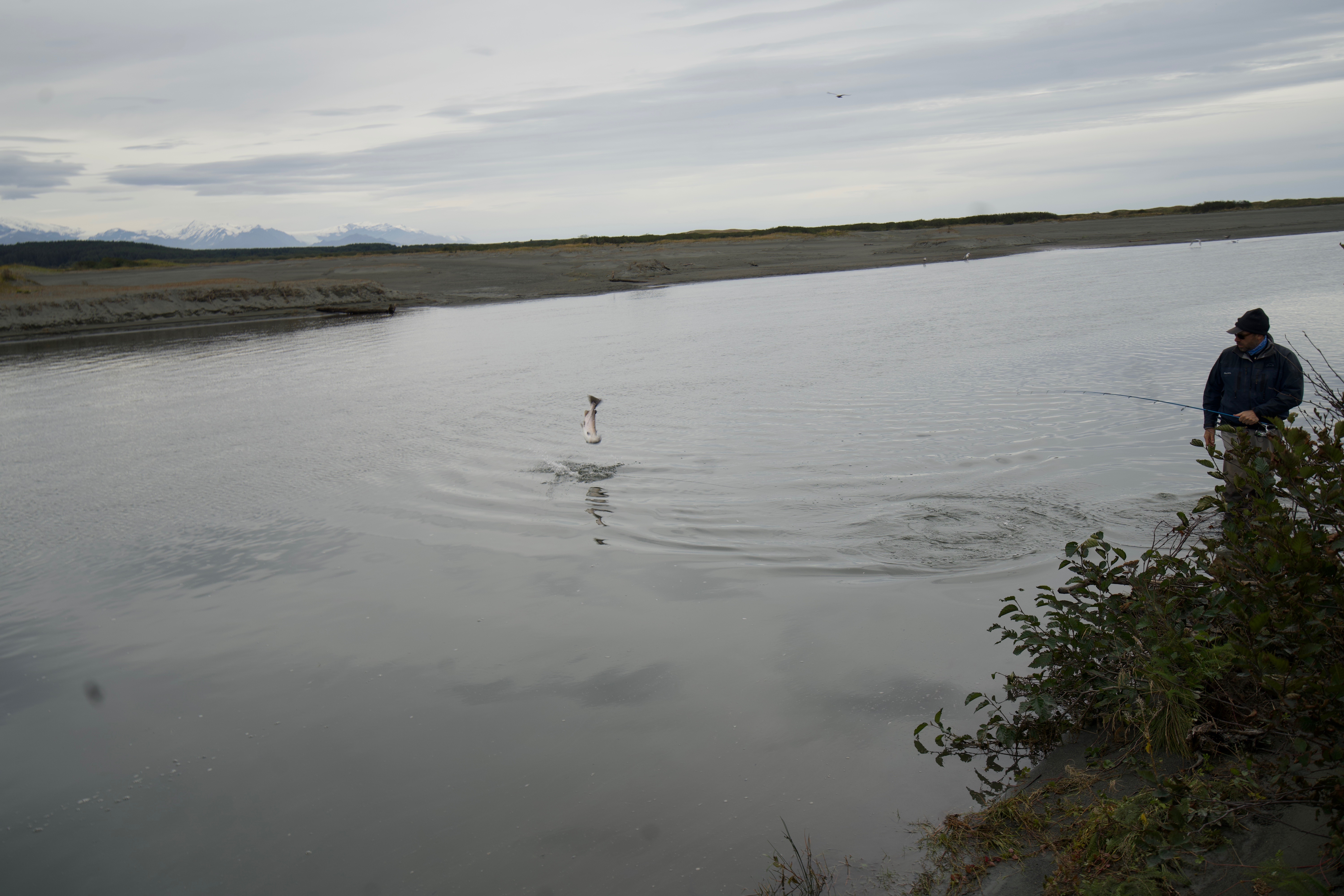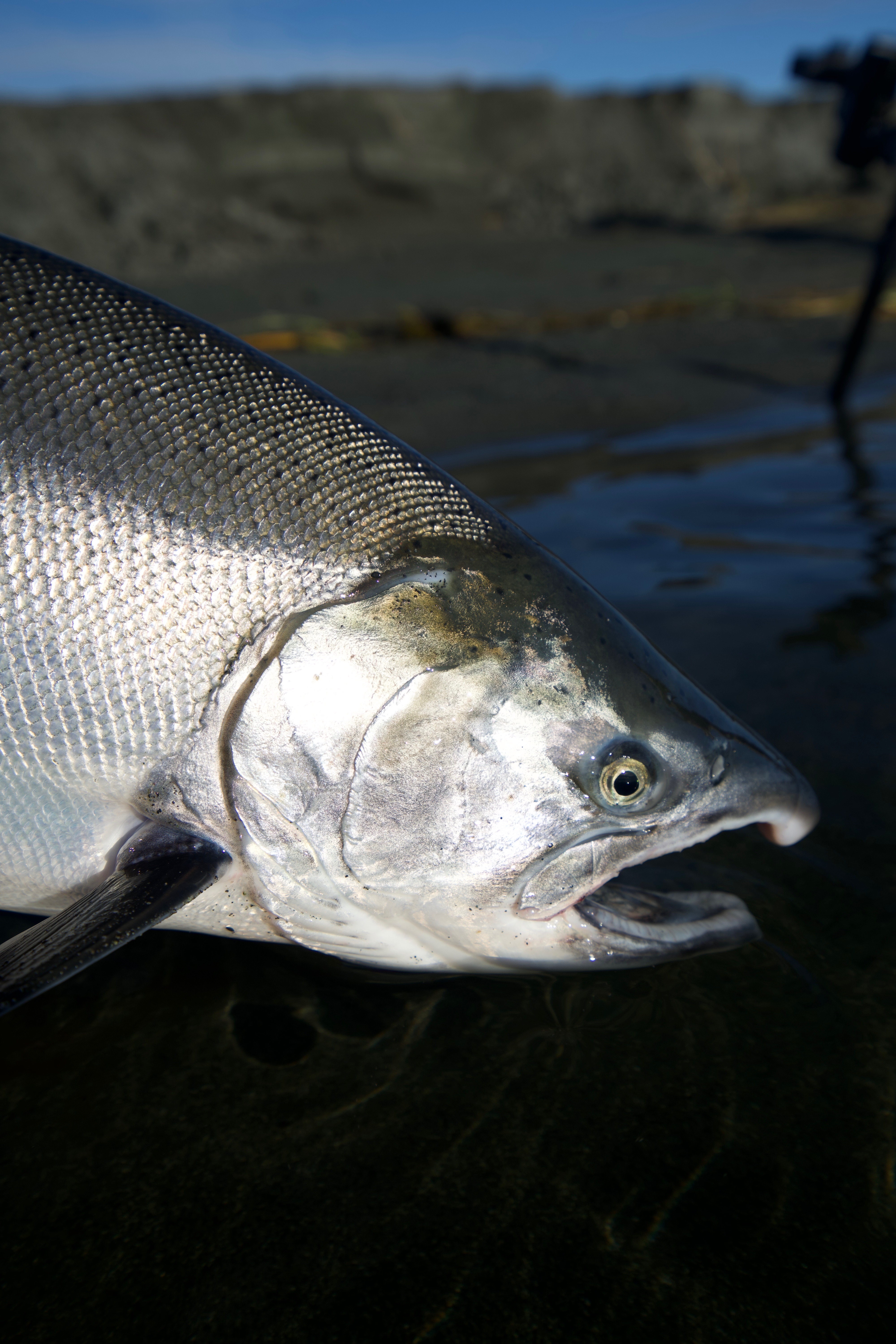 Sport Fishermen consider silver salmon the “premier” pacific salmon species, as it is a very aggressive and hard fighting fish. Silvers are characterized by their acrobatic, sizzling runs that will consistently go into the reel’s backing. An average silver weighs about 10½ pounds, but our lodge record is over 22 pounds. Don’t be surprised if you have to rest your arms from time to time! The silver run on the Tsiu is an extremely strong, long-lasting run that occurs from early August through October. The type of tackle fisherman use is fly, casting, or spinning equipment. Eight or nine weight fly-rods are preferred with high capacity reels (to accommodate those long rocket runs!) and medium weight casting and spinning gear. We will provide you with a complete suggested gear list including the type of flies and lures that will bring you the most success. Fishing is included on all of our hunting expeditions where you will have one of our professional fishing guides on hand to show you the best locations on the river.